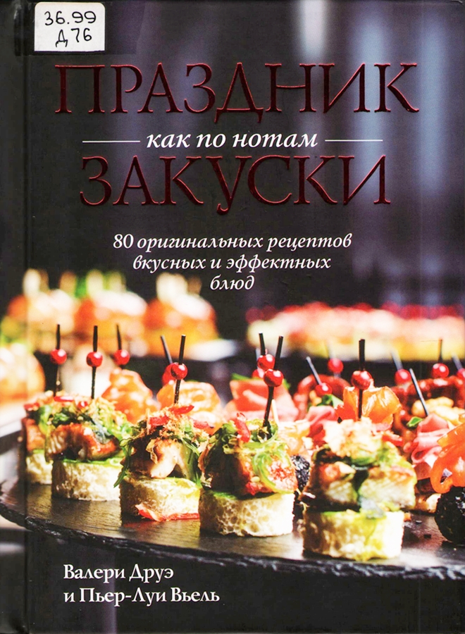 В книге известных французских кулинаров Валери Друэ и Пьера-Луи Вьеля «Праздник как по нотам. Закуски» на 138 страницах представлены 80 оригинальных рецептов не только вкусных и эффектных блюд, как гласит полное название издания, но и блюд, которые станут украшением любого застолья и при этом, что немаловажно, собранного на скорую руку. Оценить, как выглядит каждый маленький шедевр кулинарного искусства, помогут иллюстрации, которыми сопровождён каждый рецепт. Это мясное, овощное и сырное ассорти, блюда с рыбой, креветками и моллюсками, закуски на шпажках и в панировке, хрустящие рулетики, шашлычки, крокеты, тарталетки с нежными начинками, муссы и паштеты. Если вы не знаете, что такое террины, риеты, гужеры, темпура и чатни, то самое время открыть для себя и эту часть кулинарного мастерства. Колорит блюд – не только французский, но и испанский, итальянский, скандинавский, в восточных традициях.