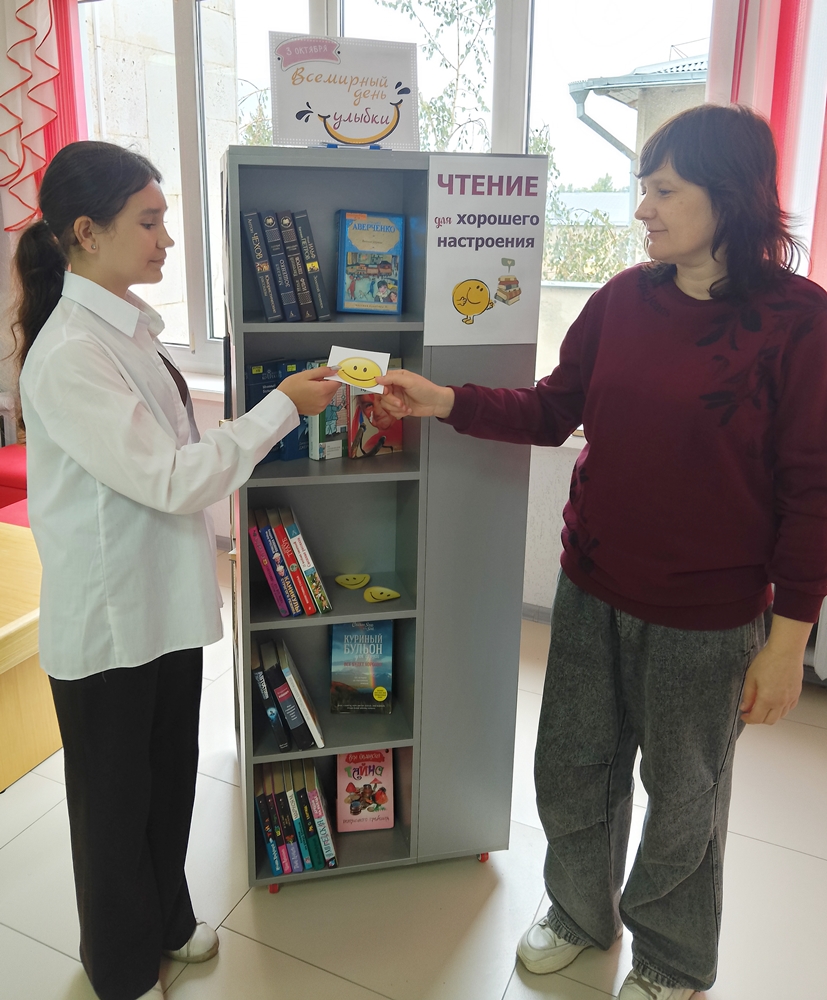К Всемирному дню улыбки, отмечаемому в начале октября, в Центральной городской библиотеке им. М. Горького читателей юношеского абонемента ждал сюрприз, подготовленный библиотекарями: сувенирный смайлик и рекомендация книги, повышающей настроение.