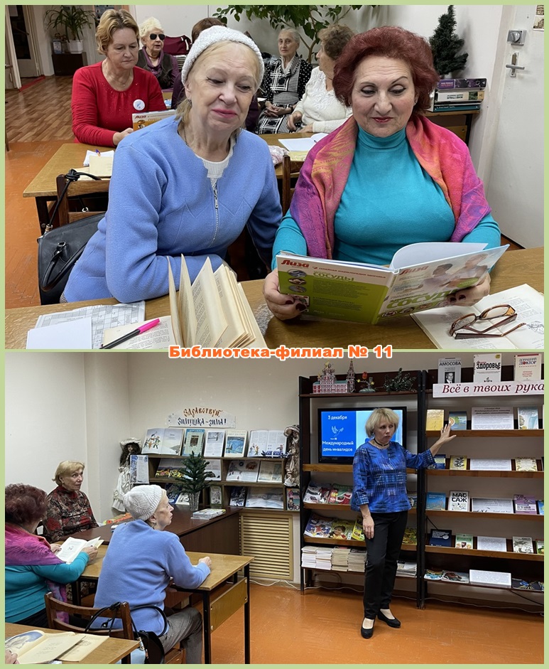 А к Дню инвалидов в этом же филиале был проведён час доброты «Ограниченные возможности, безграничные способности» и оформлена тематическая книжно-иллюстративная выставка «Всё в твоих руках». На мероприятии присутствовала давняя читательница библиотеки, 23-летняя участница клуба «Семья», ставшая призёром Паралимпиады в Токио в 2020 году, чемпионкой Европы, призёром чемпионата Мира в метании ядра Евгения Галактионова. Несколько участниц литературно-досугового клуба «Серебряный век» с инвалидностью поделились советами на все случаи жизни, в том числе рассказав, что активный досуг с книгой приносит в их жизнь позитив.