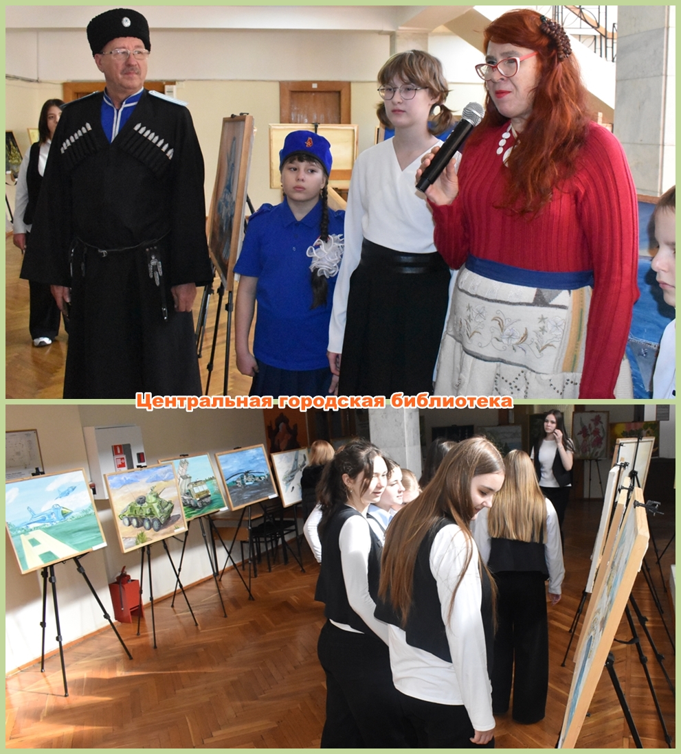 В Центральной городской библиотеке состоялась презентация выставки «И слово благодарности скажу тебе, солдат», на которой свои работы представили учащиеся военно-исторической художественной Арт-студии «Бетельгейзе» им. героя России генерал-майора Шаймуратова при Дворце детского творчества г. Минеральные Воды. От имени учредителей Арт-студии – Межрегионального общественного движения терских казаков ТКВ приветствовал участников атаман Пятигорской казачьей общины им. М. В. Инкавцова Юрий Олегович Синяк.