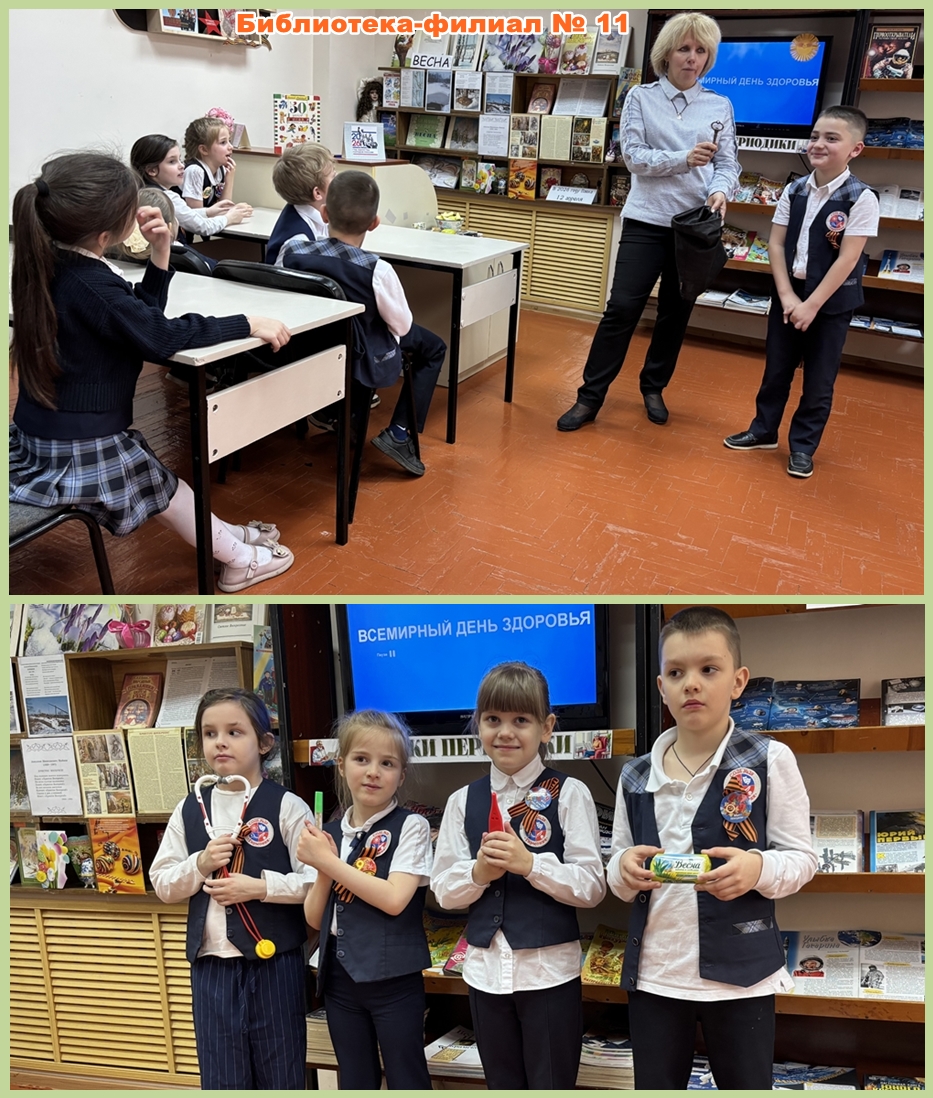 В библиотеке-филиале № 11 на уроке здоровья «Мы зарядку делали…» побывали учащиеся младших классов школы № 29. Библиотекари провели опрос гостей на тему, какие виды спорта им больше нравятся, рассказали об опасностях вредных привычек, познакомили с изданиями о ЗОЖ, а за активное участие в конкурсах и викторинах угостили юных читателей витаминными яблочками.