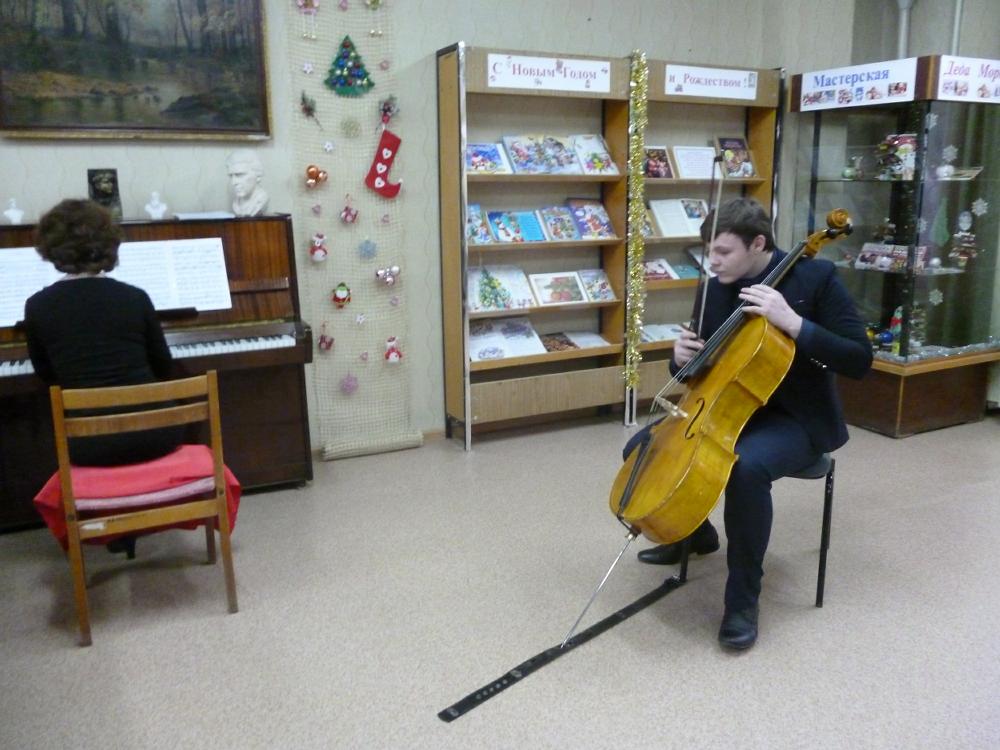 21 декабря в библиотеке-филиале № 8 состоялся литературно-музыкальный вечер «К нам стучится Новый Год». Он начался со стихотворного новогоднего пожелания читательницы Анны Коноваловой. Ведущий библиотекарь Татьяна Карцева представила всем участникам праздника гостей и друзей библиотеки – студентов Ставропольского краевого колледжа искусств имени В.И.Сафонова и их наставников. Зрителей собрался полный читальный зал – 38 человек – и все с огромным удовольствием слушали классику. Прозвучали не только музыкальные произведения, но и интересный рассказ о них.