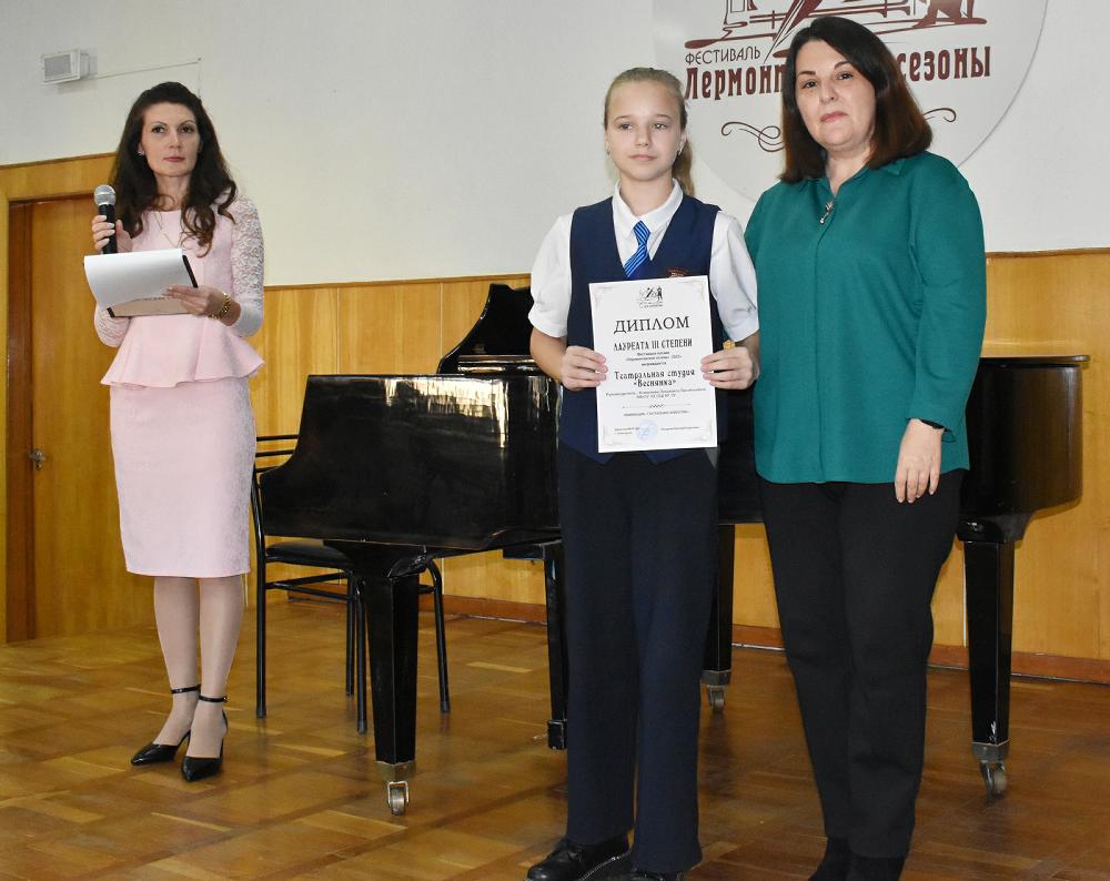 Обладателем Гран-при в номинации «Поэзия» стал ученик школы № 12 Кирилл Черных. В торжественной обстановке, под аплодисменты присутствующих на сцене библиотеки были вручены награды победителям во всех номинациях – «Проза», «Поэзия», «Театрализация», «Изобразительное искусство», «Музыкальное искусство» и «Мультимедиа». Церемонию закрытия «Лермонтовских сезонов» украсили номера в исполнении обладателей Гран-при и лауреатов I степени, представивших свои конкурсные произведения для всех зрителей.