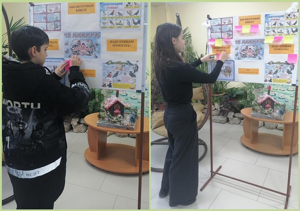 Стали известны результаты библиотечного квилта «Трудно птицам зимовать – надо птицам помогать», который проходил в январе в Центральной городской библиотеке им. М. Горького и был посвящён важной теме – заботе о птицах, зимующих в нашем городе.