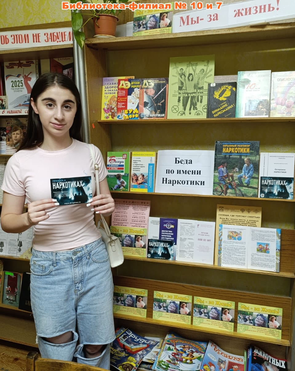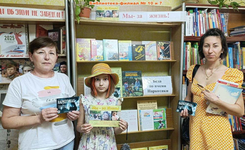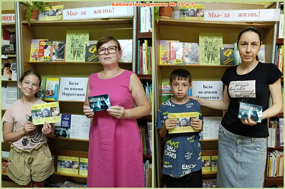 А в библиотеке-филиале № 10 прошла совместная с филиалом № 7 акция «Беда по имени Наркотики» по профилактике вредных привычек среди читателей – жителей микрорайона «Белая Ромашка». Участников акции знакомили с изданиями, представленными на книжно-иллюстративной выставке «Мы – за жизнь!», вручали буклеты с информацией о вреде наркотических средств и об ответственности за их распространение. В беседе с молодёжью библиотекари рассказывали о последствиях употребления наркотиков и знакомили с альтернативными способами проведения досуга, которыми являются спорт, активный образ жизни и чтение книг!