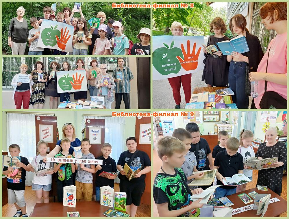 Сотрудники библиотеки-филиала № 8 провели для читателей акцию «Жизнь прекрасна – не губи её». У выставки на открытом воздухе библиотекари рассказывали о пагубном влиянии наркотических веществ на организм, о юридической ответственности, о здоровом образе жизни и спорте.
