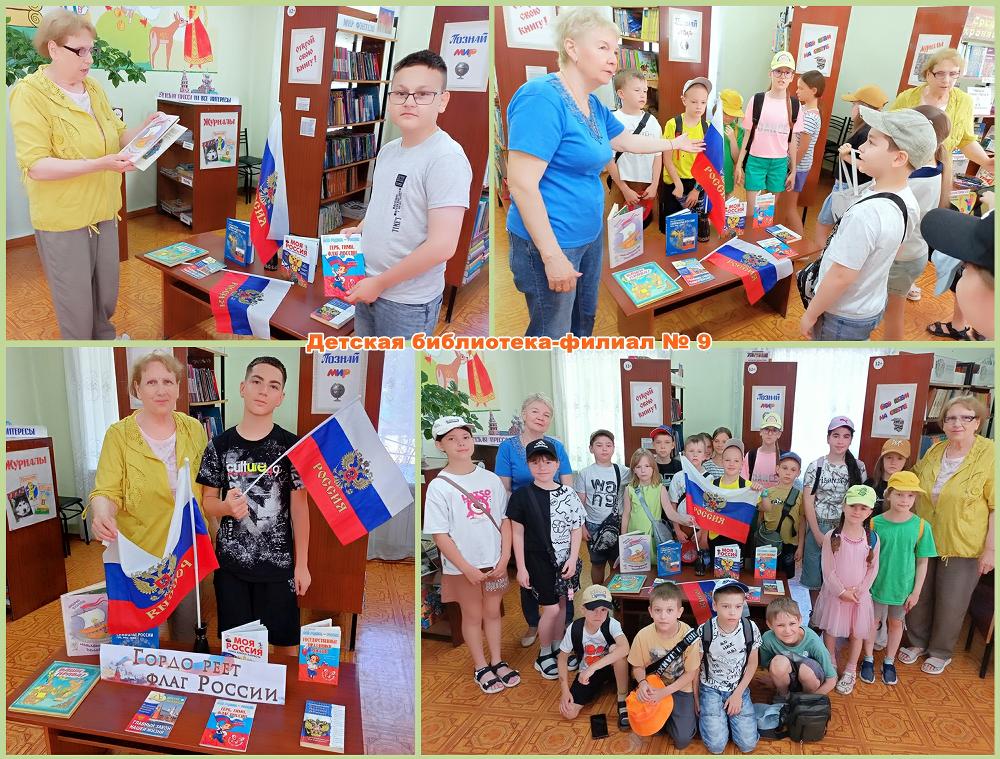 Читатели детской библиотеки-филиала № 9 в ходе патриотической акции «Флаг России — наша гордость!» узнали много интересной информации о флаге России, ознакомились с книгами, рассказывающими о символах страны.