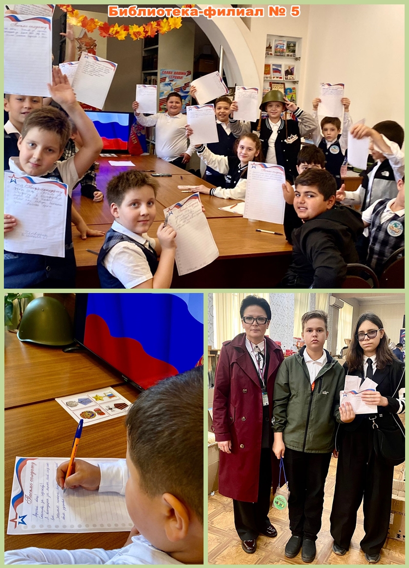 В библиотеке-филиале № 5 ко Дню учителя для учеников 4 «А» класса школы № 25 был проведён праздничный библиотечный урок «Учитель на страницах книг» с викториной «Логика-педагогика» и мастер-классом по созданию открытки для классного руководителя. К Международному дню пожилых людей участники библиотечного клуба «Копилка талантов. Волонтёры библиотеки» поздравили почётных жителей посёлка Свободы, состоящих в Совете Ветеранов, подготовив для них праздничный концерт «Осенний вальс». А для учеников 3 «А» класса школы № 25 в библиотеке был проведён патриотический час памяти «Героями не рождаются – героями становятся», посвящённый героям России – участникам специальной военной операции, во время которого ребята написали письма для солдат, находящихся в зоне СВО.