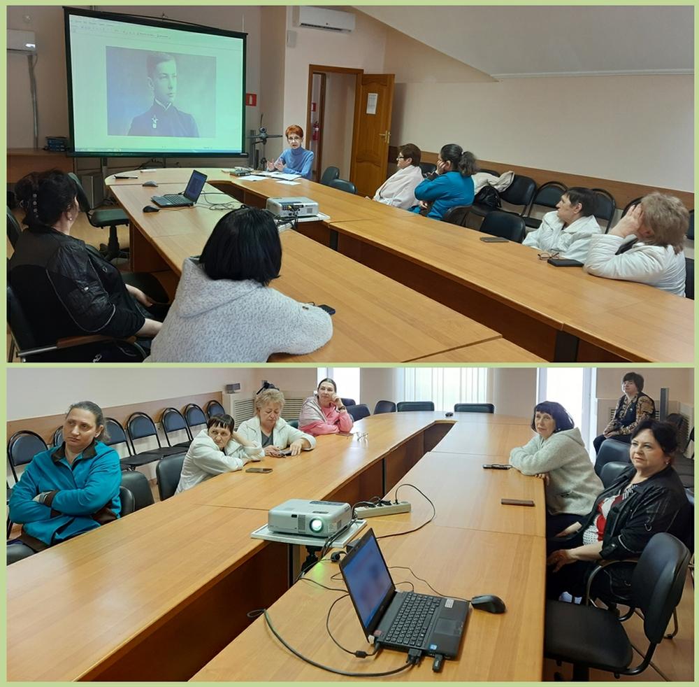 Главный библиотекарь общего читального зала Августа Алякринская представила читателям литературный портрет «Рыцарь с душою скитальца», рассказав о жизни и творчестве одного из ярчайших представителей литературы Серебряного века, поэта, прозаика, драматурга, литературного критика Николая Гумилёва.