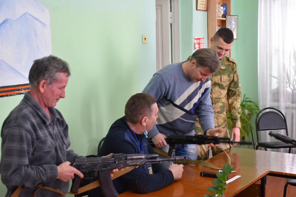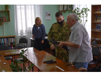 19 февраля в библиотеке-филиале №4 прошла интеллектуальная игра «Победителем БЫТЬ!», посвященная Дню защитника Отечества. В праздничной игре приняли участие представители в/ч 3774, мужская половина ЦГБ им. М. Горького, давний друг и внештатный помощник библиотеки Александр Юшко, ветеран Великой Отечественной войны, подъесаул Горячеводского казачьего общества Александр Николаевич Борисенко. Заведующая библиотекой Наталия Рядская поздравила собравшихся мужчин с наступающим праздником, рассказала об истории праздника и предложила сыграть всем вместе в интеллектуальную игру военной тематики. Открыли игру музыкальные номера – поздравления с праздником воспитанников Детской музыкальной школы № 2 Георгия Трудкова и ансамбля «Лад». Задания для участников были на смекалку, на знание воинских терминов. Сюрпризом для всех стала практическая часть: вспомнить свои школьные годы, службу в армии и разобрать, собрать автомат Калашникова. Мужчины не утратили своих навыков, но не уложились во времени. Сложнейшим пунктом игры оказалось сопоставить фамилии знаменитых исторических личностей, поэтов, писателей и их воинские звания. В заключении ведущая мероприятия Наталия Рядская еще раз от всей души поздравила мужчин с праздником, пожелала им кавказского долголетия, семейного благополучия и надежного тыла. Все участники получили на память значки победителей игры и общую фотографию. Сотрудники библиотеки-филиала № 4 выражают искреннюю благодарность отделу компьютеризации и новых технологий ЦГБ им. М. Горького за помощь в техническом сопровождении мероприятия.