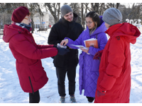 Также в рамках акции был проведён буквенный флешмоб. Все участники держали листки с буквами, из которых складывался всё тот же призыв: «ПОКОРМИТЕ ПТИЦ ЗИМОЙ!»