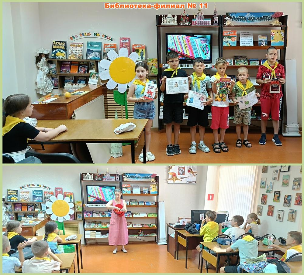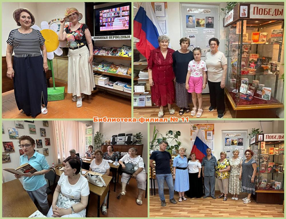 В библиотеке-филиале № 11 для юных читателей из летнего лагеря отдыха при школе № 5 был проведён информационный час-предупреждение «Терроризм – это зло против людей». А для взрослых читателей – членов клубов «Ветеран» и «Серебряный век» были проведены информационная панорама «Отвага, мужество и честь», посвящённая пятигорчанам, погибшим в ходе СВО, и мероприятия, приуроченные ко Дню военно-морского флота, 110-летию со дня рождения поэта-песенника Михаила Матусовского и 95-летию со дня рождения актёра театра и кино, кинорежиссёра, автора и исполнителя песен Олега Анофриева.