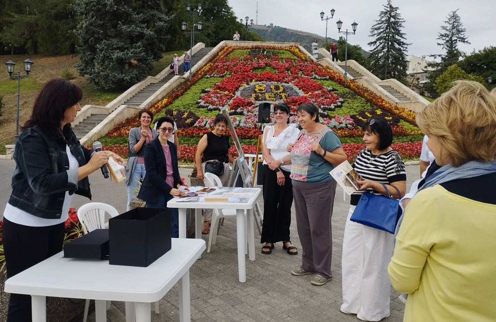 В День города Пятигорска сотрудники Центральной городской библиотеки им. М. Горького и Центральной детской библиотеки им. С. Михалкова предложили гостям и жителям города совершить импровизированную прогулку по улице Гоголя в рамках интерактивной программы «Променад по Гоголевскому бульвару».