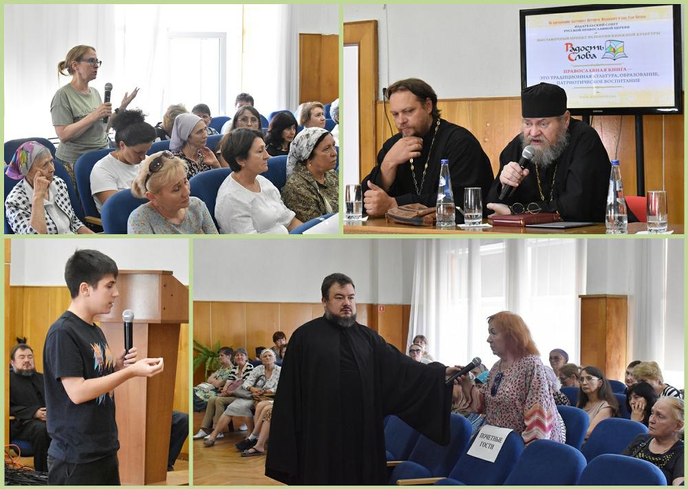 Открывая форум, архиепископ Пятигорский и Черкесский Феофилакт обратился со словами благодарности к руководителю Централизованной библиотечной системы Пятигорска Василию Бандурину и ко всем библиотекарям за гостеприимство и возможность провести на базе Горьковской библиотеки книжную выставку-форум «Радость слова» и фотовыставку, посвящённую 100-летию со дня блаженной кончины Патриарха Тихона. В ответном приветственном слове директор Централизованной библиотечной системы Пятигорска Василий Бандурин поблагодарил владыку за сотрудничество и рассказал о том, что библиотека более 10 лет дружит с Пятигорской епархией и что стало традицией проводить такие совместные мероприятия, связывающие темы Веры, духовности и чтения. На встрече была представлена новая книга Святейшего Патриарха Кирилла «Вслед за святителем Тихоном. Подвиг новомучеников и исповедников Церкви Русской», а также другие издания, выпущенные издательством Московской Патриархии.
