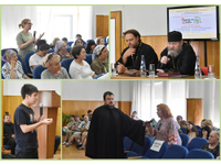 Ознакомившись с выставками, гости библиотеки, среди которых были не только пятигорчане, но и отдыхающие из других регионов, смогли принять участие непосредственно в форуме. Одним из главных выступающих был протоиерей Олег Стеняев, православный писатель и публицист, богослов-проповедник, клирик храма Рождества Иоанна Предтечи в Сокольниках. Познакомив слушателей с темой мученичества за Веру, он обстоятельно ответил на вопросы из зала, а после завершения конференции, многие из её участников подошли к нему за благословением.