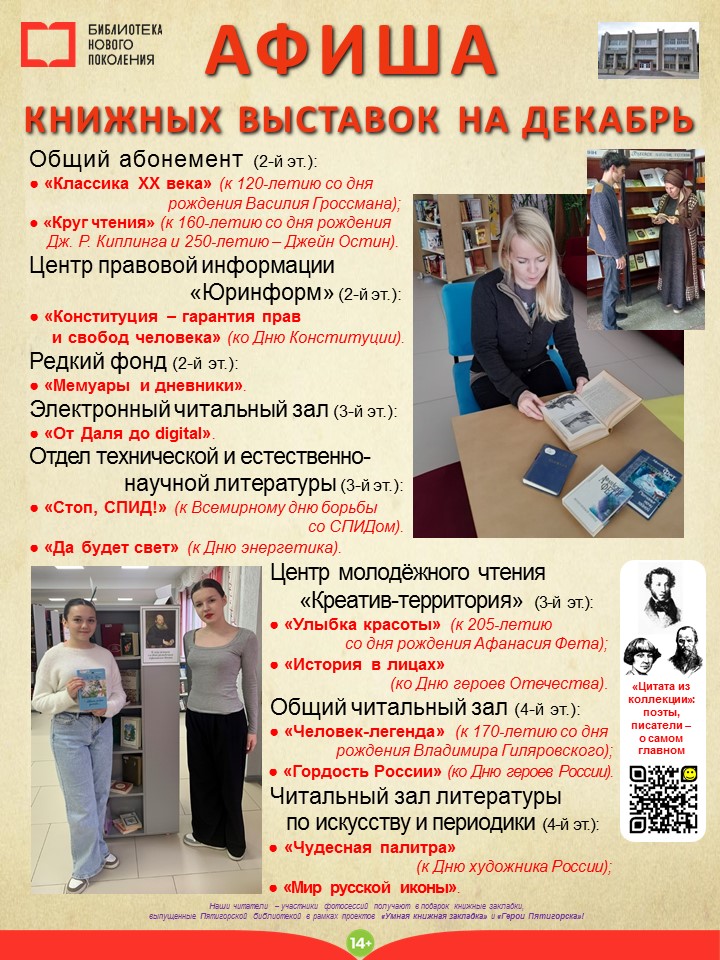 Книжные и книжно-иллюстративные выставки ждут Вас в декабре и во всех библиотеках-филиалах Пятигорска!