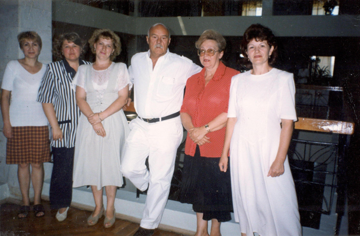 Мне посчастливилось быть знакомым со Станиславом Говорухиным, не раз встречаться, записывать с ним интервью, общаться. Известный кинорежиссёр, актёр, политик Станислав Сергеевич Говорухин, которому 29 марта исполнилось бы 90 лет, любил Кавказские Минеральные Воды, не раз бывал в Пятигорске и в Пятигорской центральной городской библиотеке им. М. Горького, где есть книги, написанные и подписанные им на память пятигорчанам. На этом фото – он на одном из мероприятий, проводившихся в Горьковской библиотеке, вместе с её сотрудниками – руководителем методического отдела Т. Н. Середенко (краяняя слева) и бывшими теперь уже сотрудниками И. А. Ерещенко, Ф. Н. Орловой, Л. Н. Зыбиной и В. Г. Куцевич.