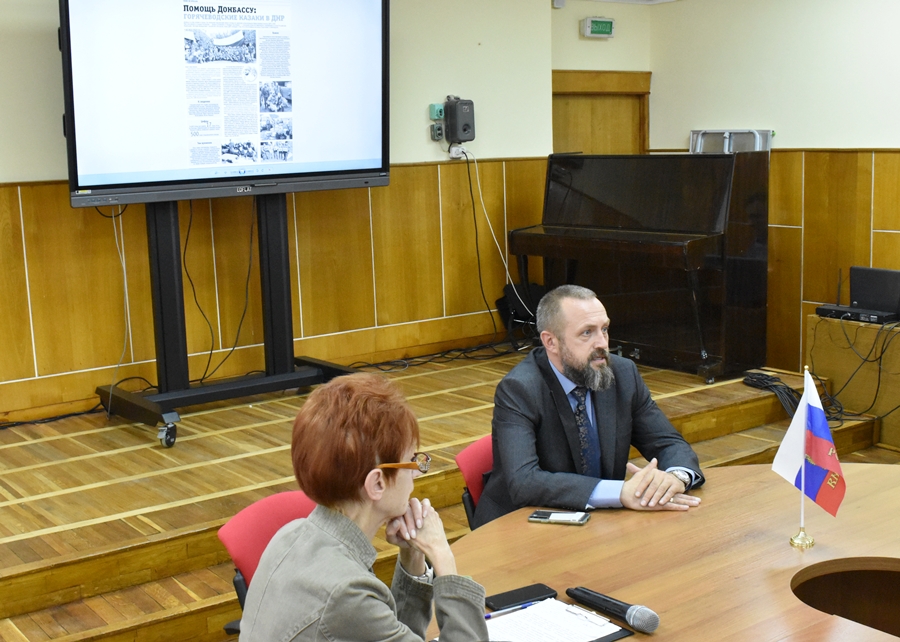 Акция «За наших» в поддержку российских военнослужащих, задействованных в специальной операции на Украине, прошла 22 сентября в ЦГБ им. М. Горького. В акции приняли участие студенты Пятигорского колледжа управления и новых технологий. Речь шла не только о гуманитарной миссии, которую выполняют казаки Горячеводской казачьей общины, но и о военной ситуации на Украине на сегодняшний момент. Обо всём этом рассказал ребятам депутат Думы города Пятигорска, атаман Горячеводской казачьей общины Владимир Савченко. Присутствующие почтили память погибших российских военнослужащих минутой молчания. Студенты смогли задать интересующие их вопросы Владимиру Алексеевичу. Все собравшиеся в зале как бы ещё раз хотели сказать: «Мы Zа наших!», «Мы своих не бросаем!». Подобные акции имеют очень важное значение в военно-патриотическом воспитании молодёжи.