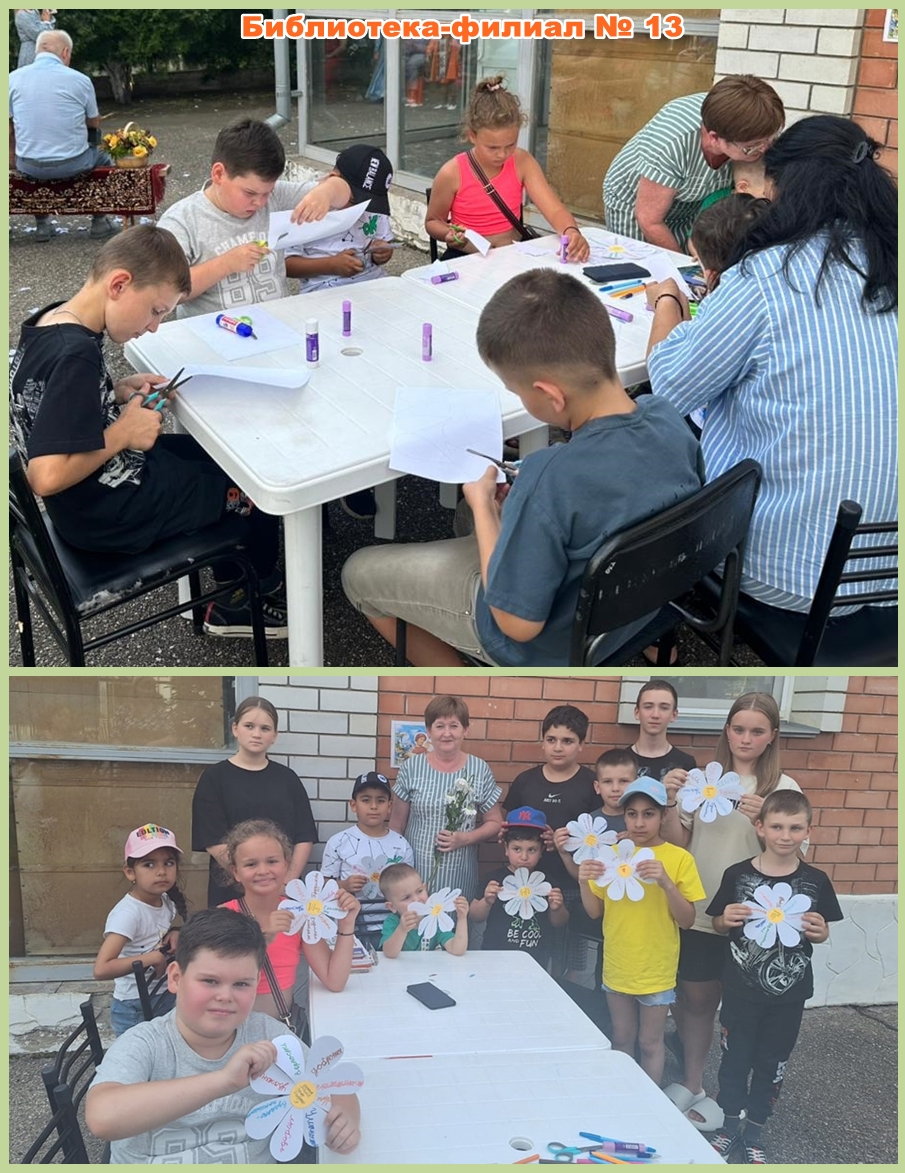 Библиотека-филиал № 13 в сотрудничестве с домом культуры посёлка Нижнеподкумский и храмом Георгия Победоносца провела для ребят из лагеря летнего отдыха при школе № 24 мастер-класс «Ромашки нежный лепесток».