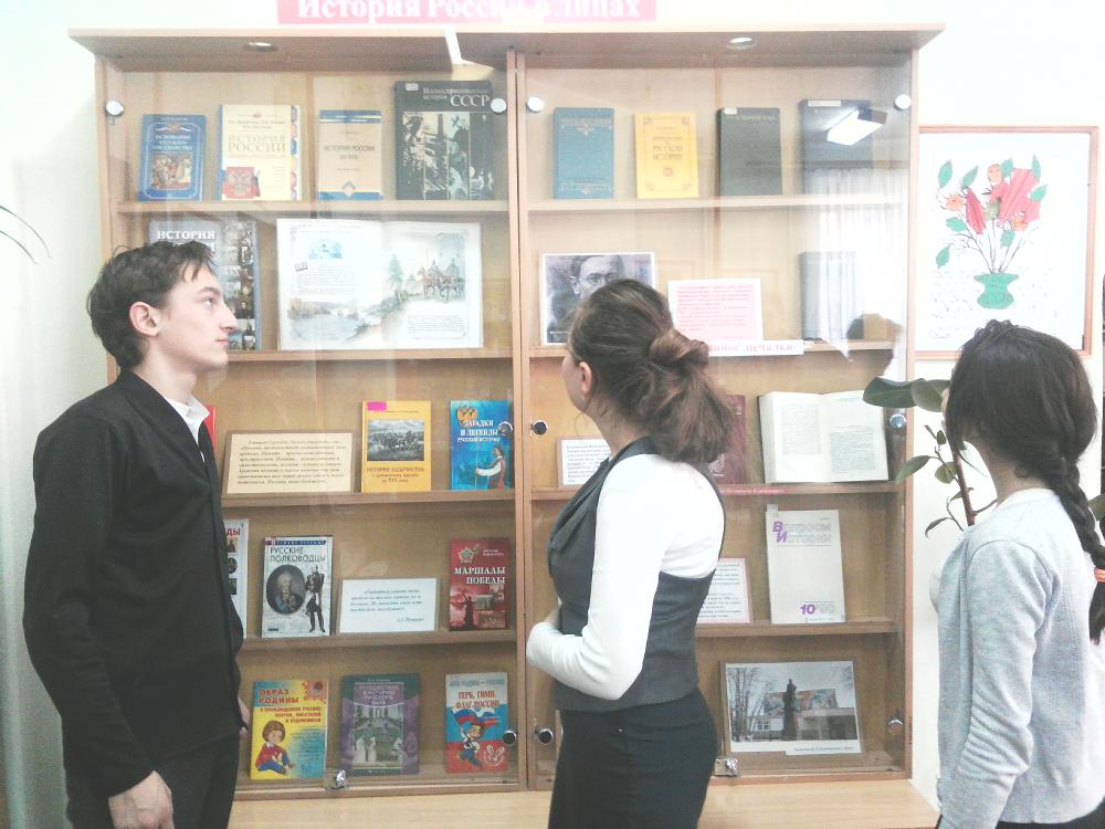 К проведению мероприятия библиотекари оформили книжную выставку «История России в лицах». Исторические часы подготовила и провела заведующая библиотекой Т.И. Досманова.