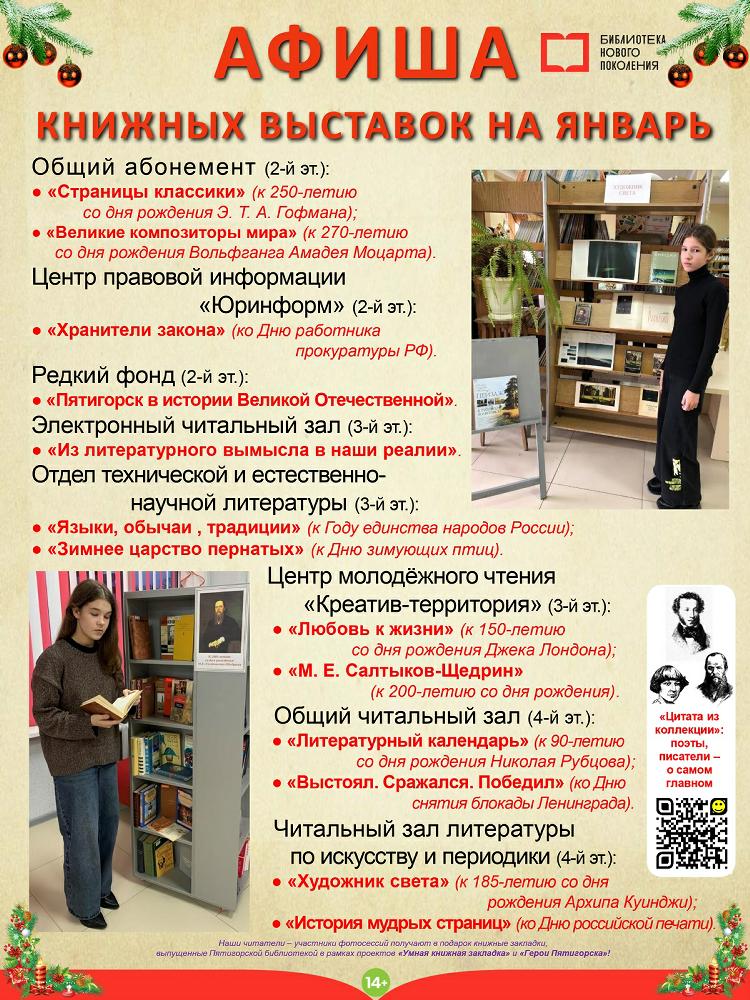 Книжно-иллюстративные выставки ждут Вас в январе и во всех библиотеках-филиалах Пятигорска!